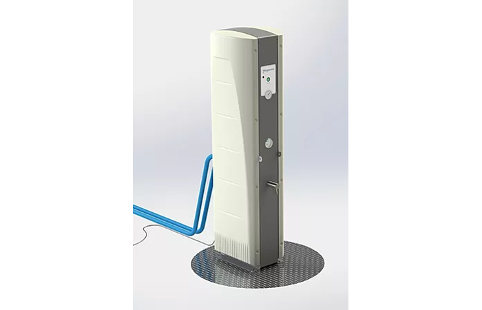 The attractable ‘R2D2’ design offers three water taps and payment terminals in one off grid solution.